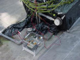 温室栽培において、温度、湿度などの温室内環境を遠隔地で監視できる無線センサネットワークシステムを開発しました。現在、農業総合試験場、大学との共同研究により、インターネットを利用した実用的なセンサネットワークシステムを開発中です。